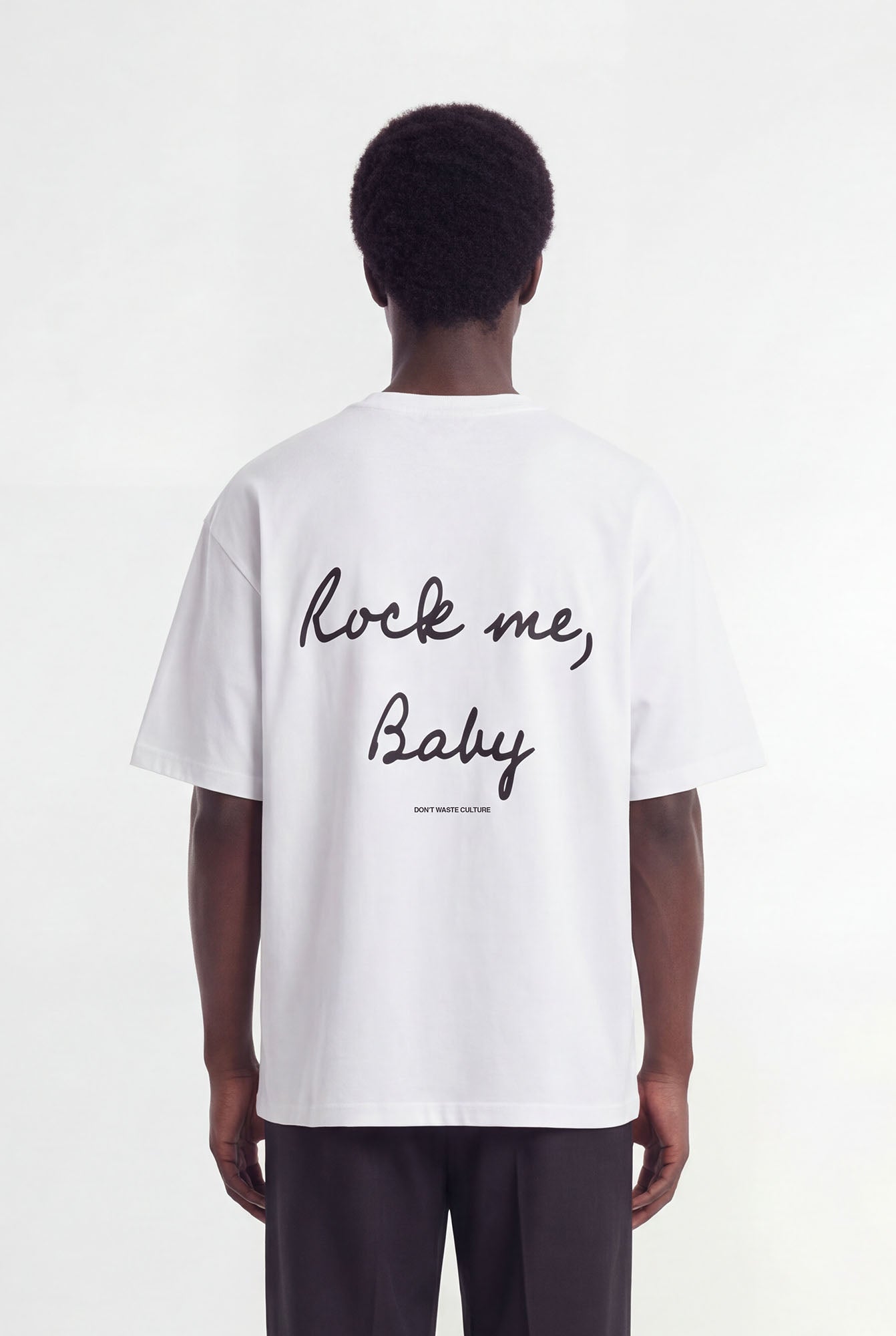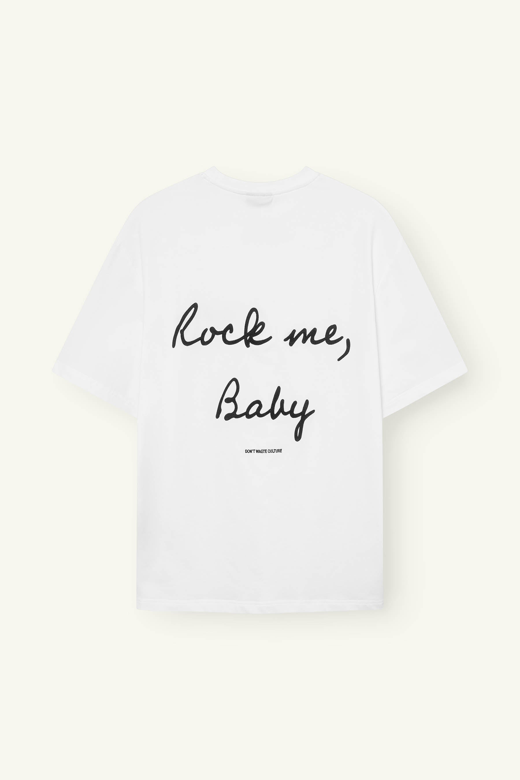 Inject bold artisanal flair into your wardrobe with the Beiron Rock Me Baby Tee, inspired by music’s raw energy and crafted for the modern connoisseur. Made from our iconic 93% cotton, 7% elastane blend, this oversized off-white tee features expert branch-style chainstitch embroidery that reads “Rock me, Baby” on the front chest and repeats in a larger script across the back, accented by the subtle “Don’t Waste Culture” tagline. Pre-shrunk and softened, it marries structure with stretch for an immediate, comfortable fit.