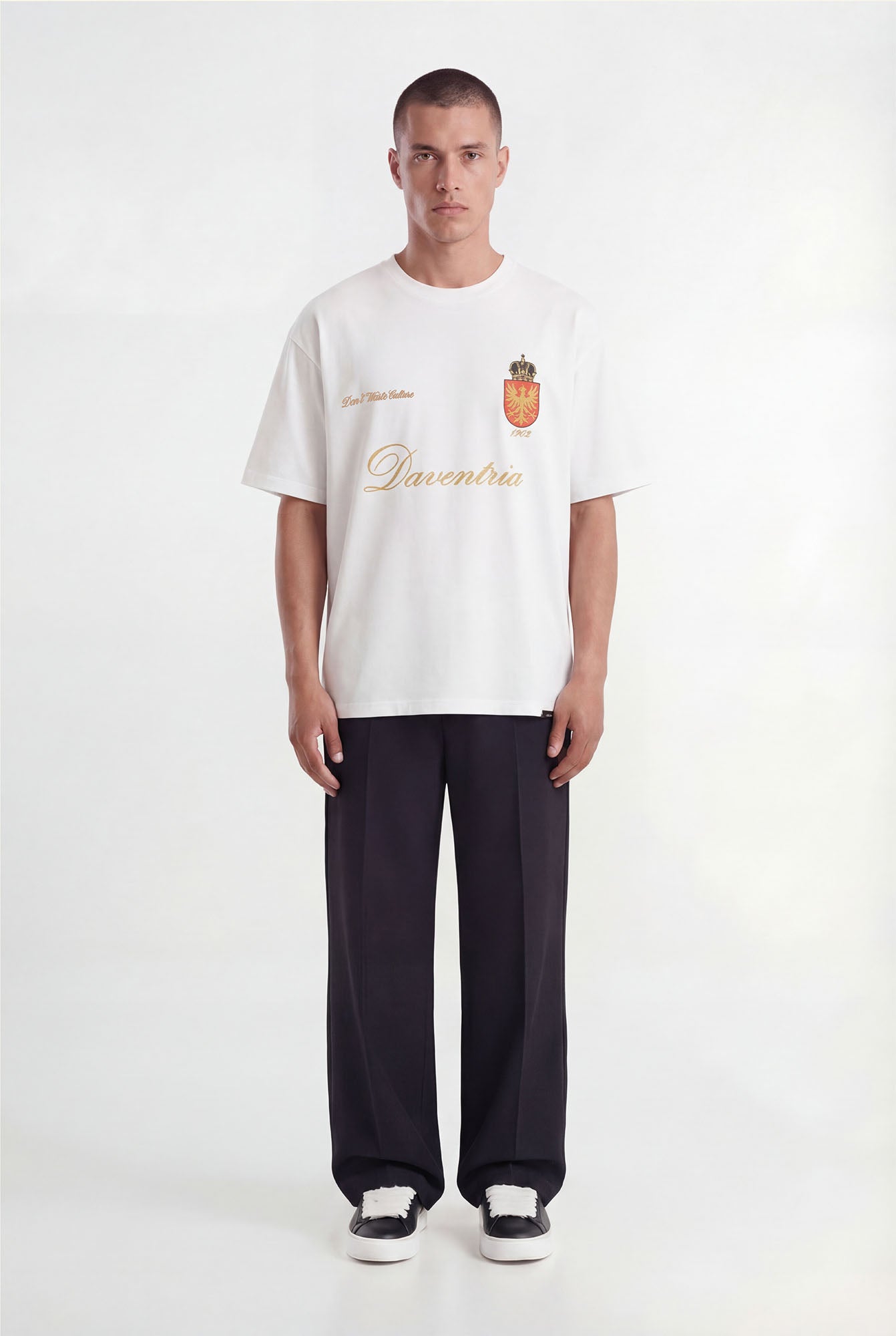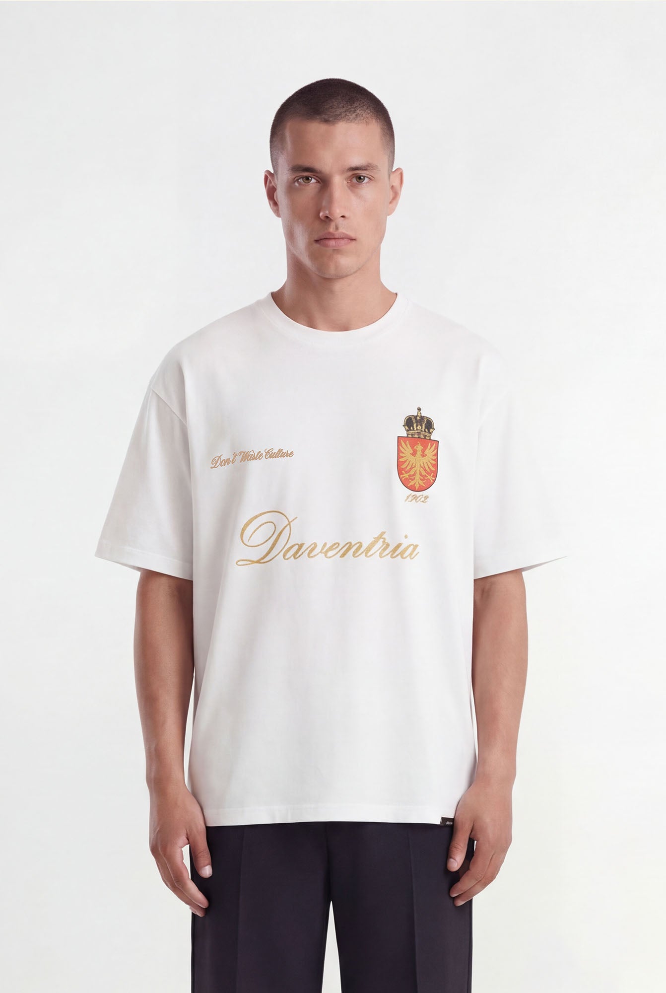 Cultural pride reimagined. The Daventria T-shirt is part of a collaborative collection celebrating shared heritage and craftsmanship. Inspired by historic football aesthetics, this piece fuses legacy design with modern streetwear sensibility. The bold screenprinted graphics and premium cotton construction create a statement that connects the past with the present, a tribute to authenticity and local culture. Part of the exclusive Go Ahead Eagles x Don’t Waste Culture Capsule.