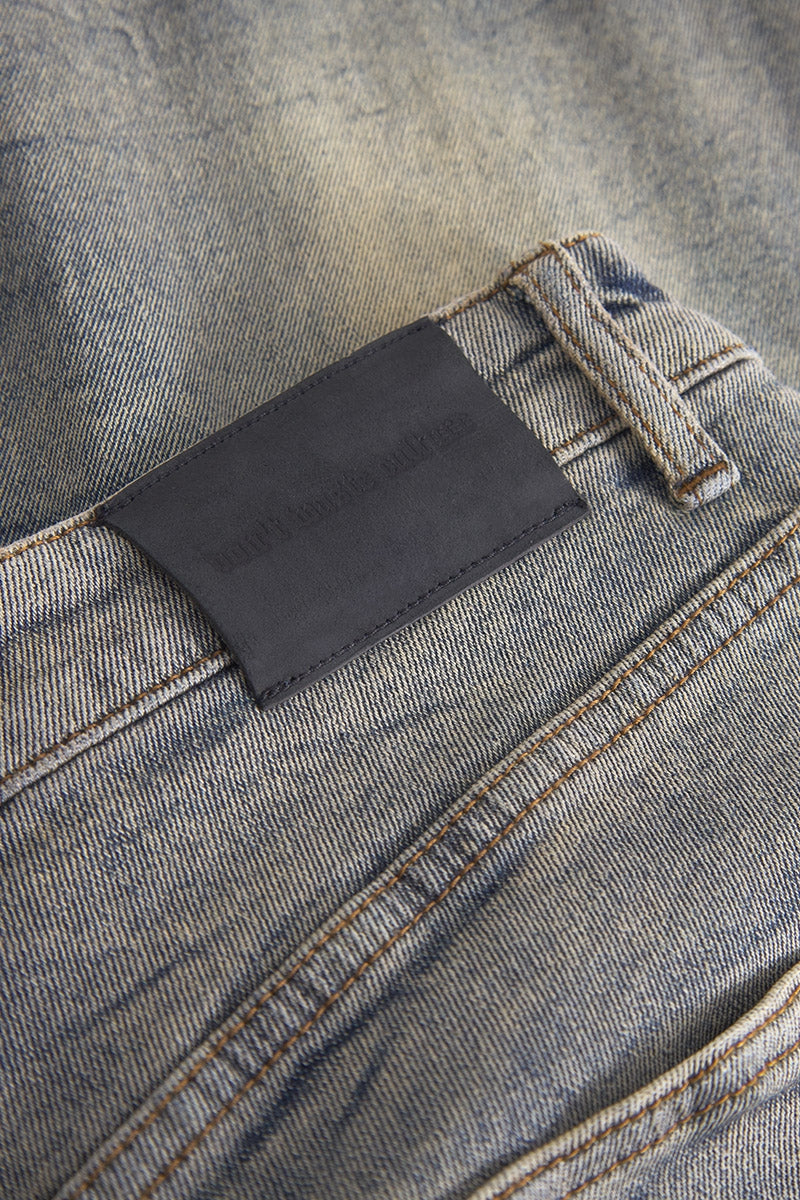 The extreme big wrinkle washing technique imparts a bold, textured look, complemented by the stone-wash colorway for a rugged yet refined aesthetic. Designed with a baggy fit, these jeans offer both style and comfort, making them a versatile addition to any wardrobe.