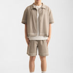 The Enkira shorts translate Puglian ornamental tradition into a lighter, technical form. Designed as a counterpart to the overshirt, they balance detail and simplicity within a clean silhouette.