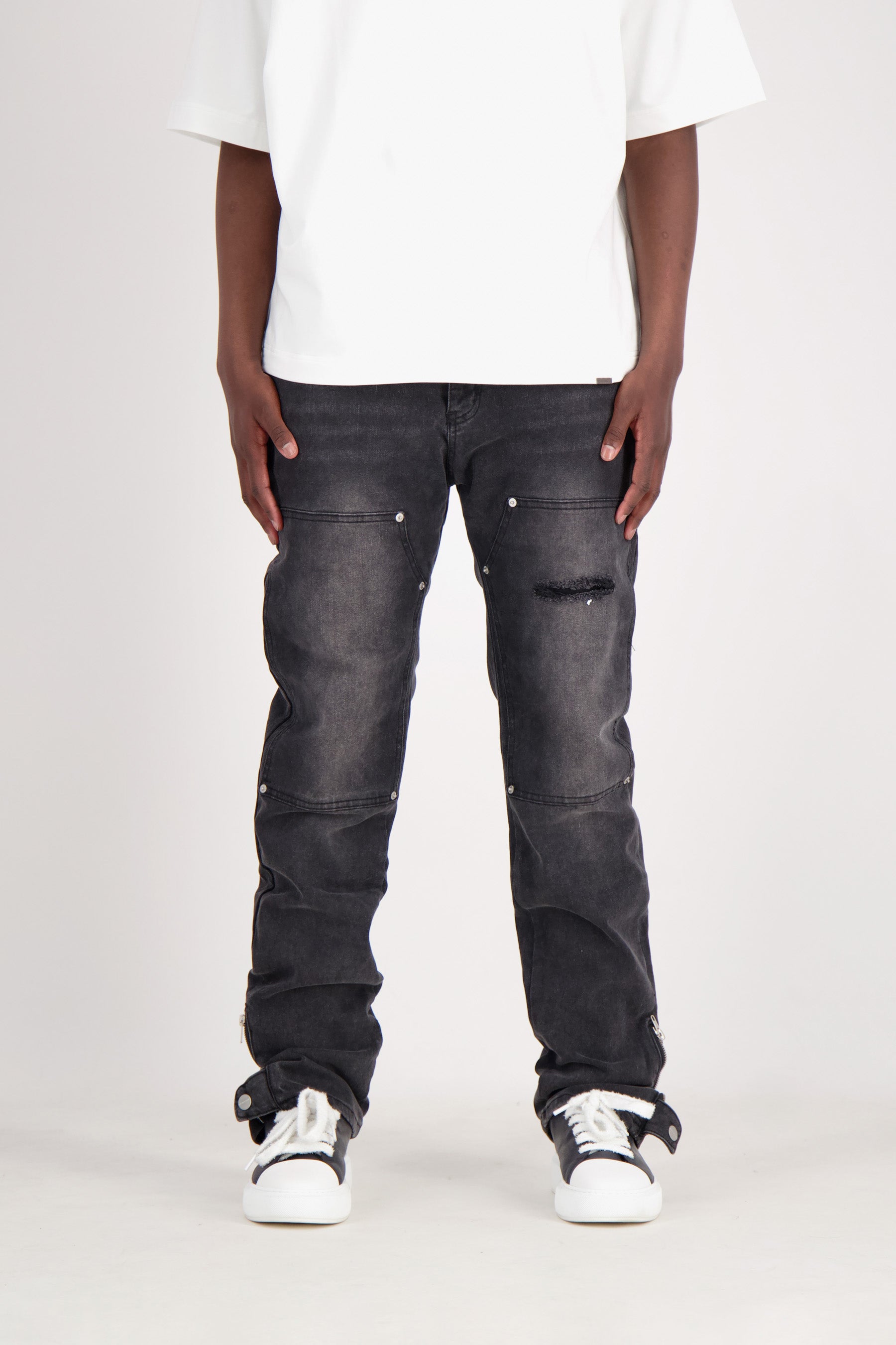 Explore our whole range of colors and fits. Many of our bottoms have a small side split or a side split with a button closure at the bottom for a unique flare effect. It doesn’t matter what color or fit you choose, either way you’ll experience the ultimate streetwear aesthetic. Our streetwear denim jeans are designed for men.