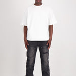 Introducing Luciana, our luxury zip flare carpenter jeans, featuring a YKK zip at the bottom. These versatile jeans can be styled in two ways: zip it up for a slim biker look or leave it open for a flared silhouette. Perfect for making a statement while enjoying comfort and quality.
