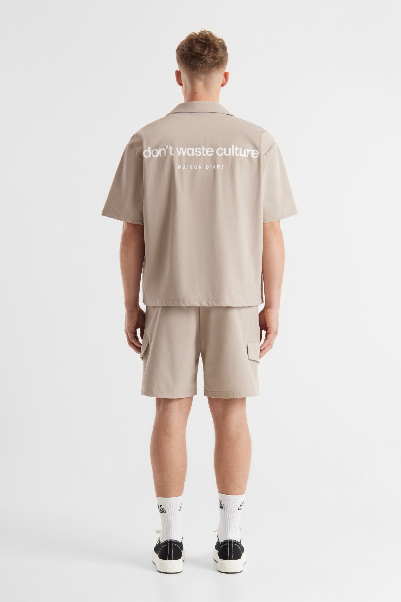 Introducing Valoria, a water resistant short sleeve shirt. Part of a luxury summer set together with Aisla. Made out of a fine nylon fabric with a water resistant coating. Button closure and finished with the 'Maison D'art' frontprint and backprint. Also a great piece to wear inside. A luxury shirt to give that extra touch to your outfit.