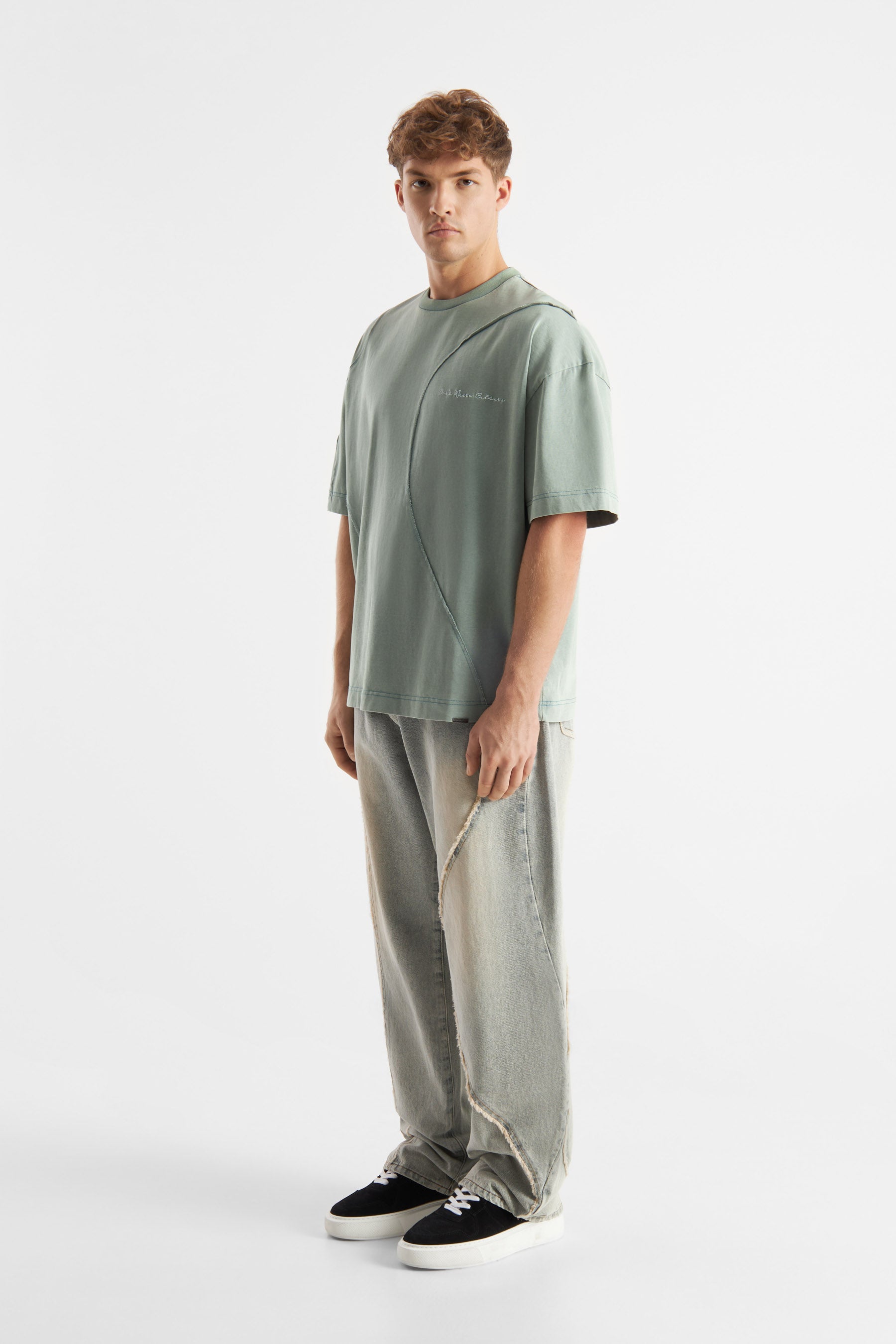 - Asymmetrical seams with raw edges