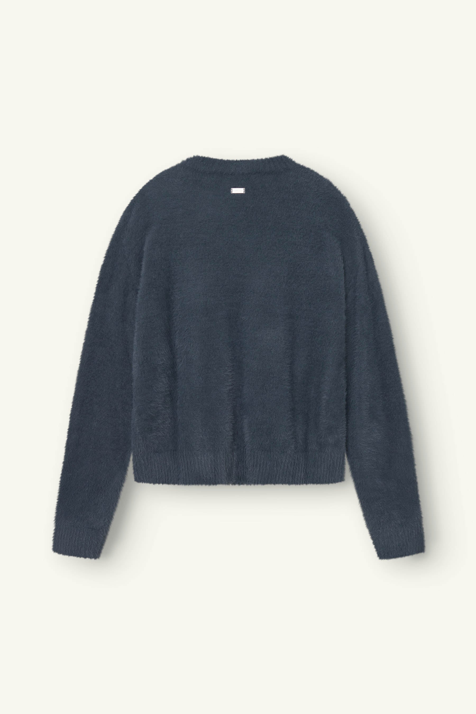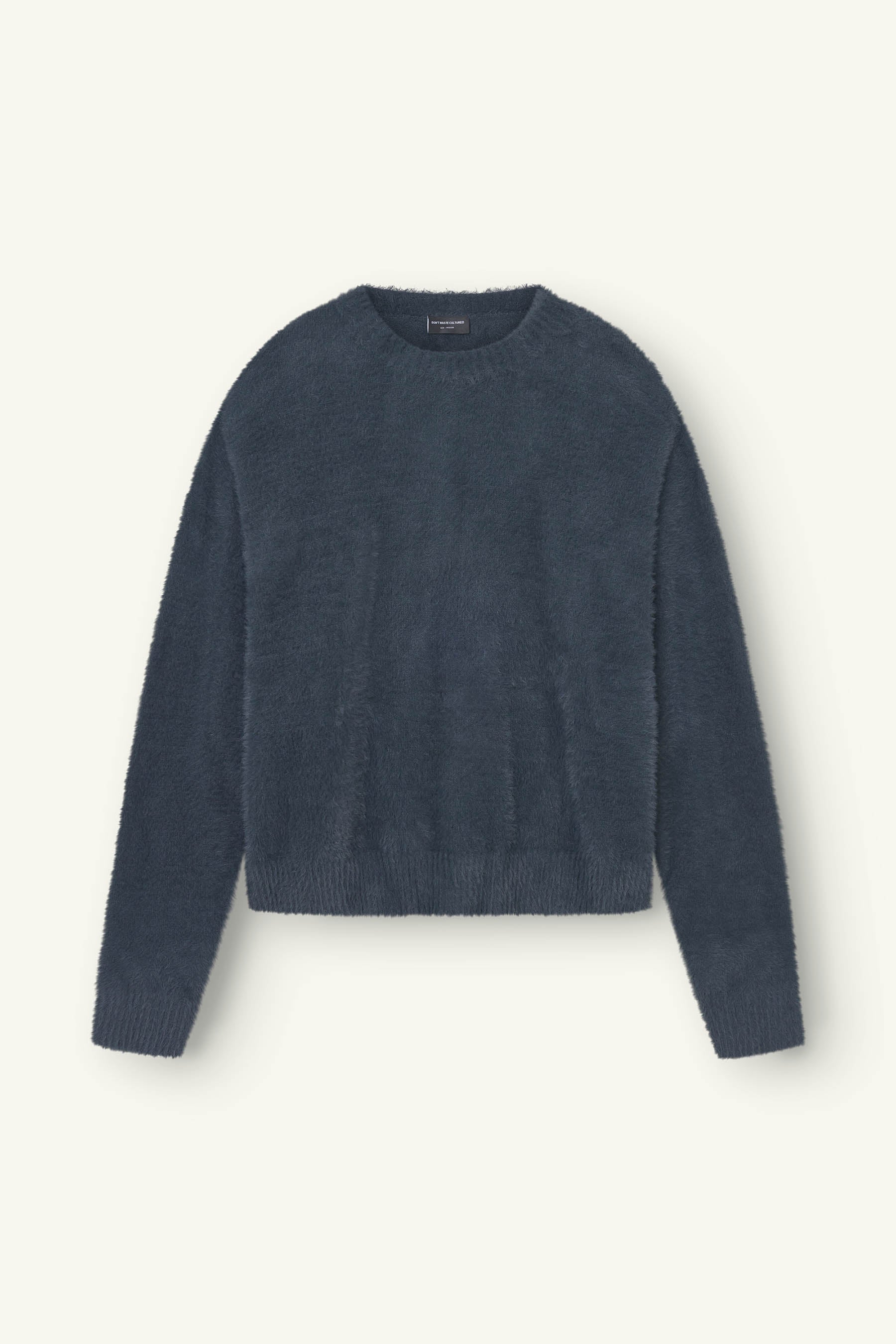 Textured ease. The Emrys Hairy Sweater is crafted to combine softness and structure with modern simplicity. Its hairy nylon knit creates a plush, tactile finish while remaining lightweight and durable. The relaxed cut and classic neckline make it an effortless layering piece, whether styled casually or elevated for a clean, refined look.