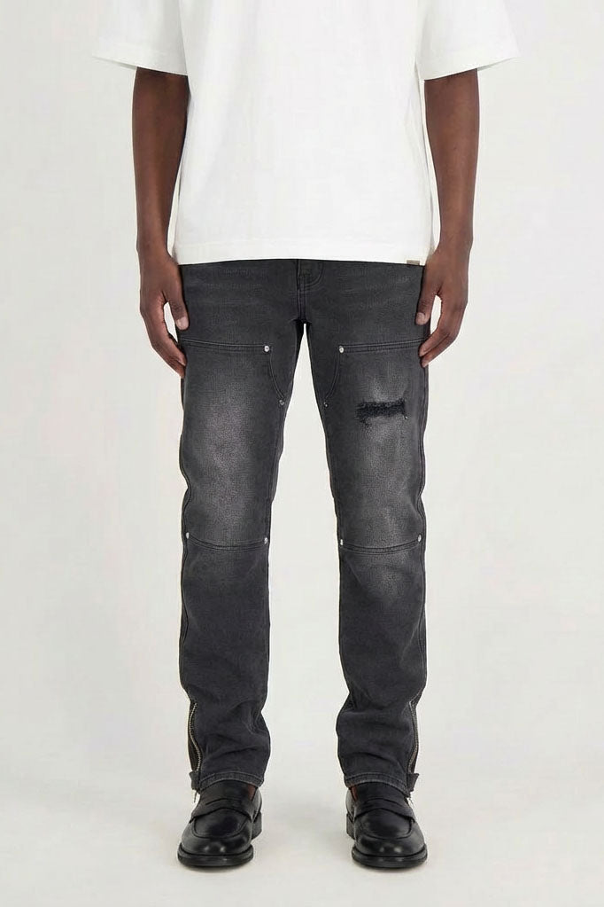 Introducing Luciana, our luxury zip flare carpenter jeans, featuring a YKK zip at the bottom. These versatile jeans can be styled in two ways: zip it up for a slim biker look or leave it open for a flared silhouette. Perfect for making a statement while enjoying comfort and quality.