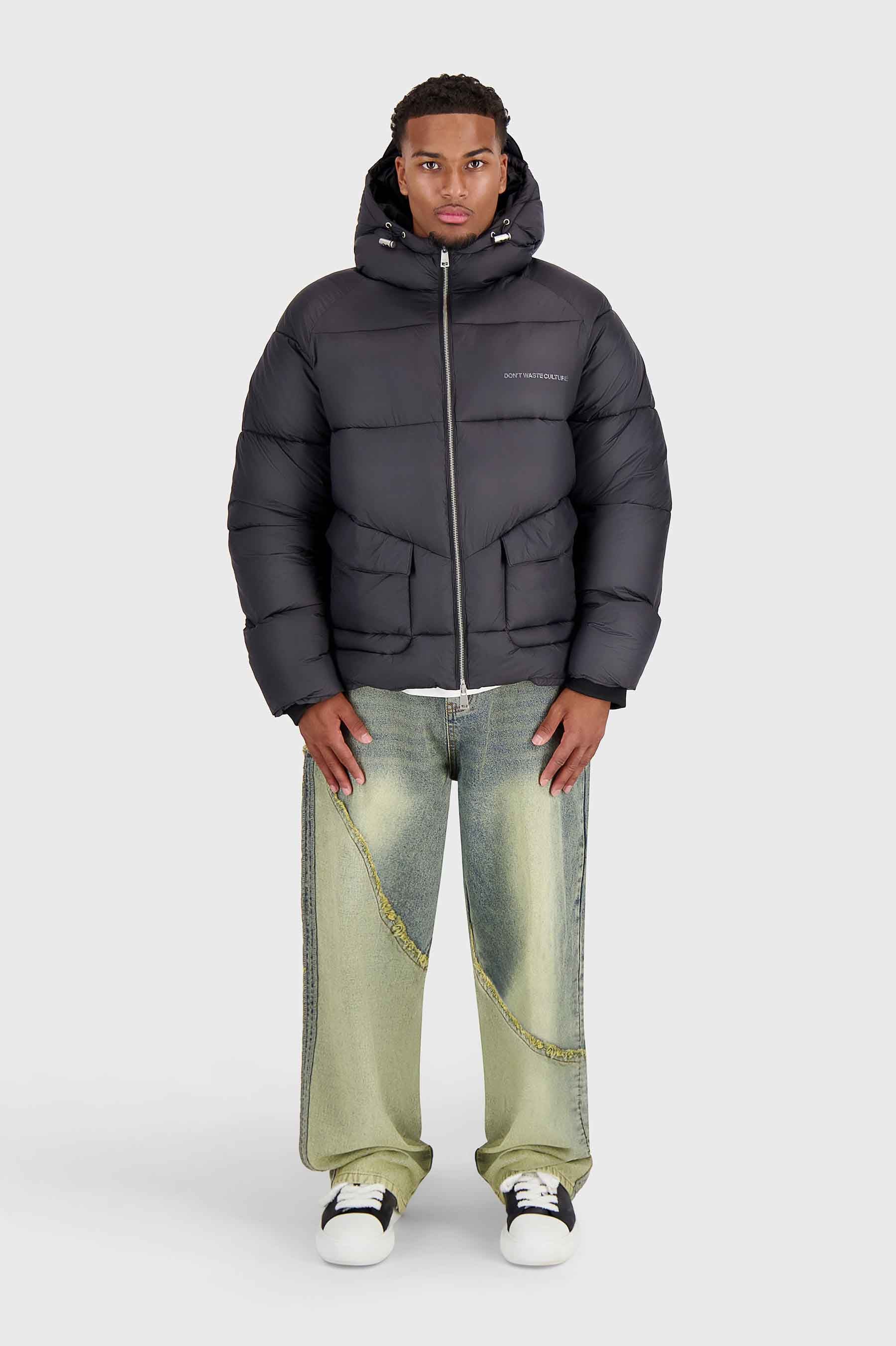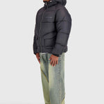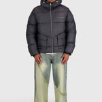 Street‑ready warmth. The Vaida Big Pocket Puffer Jacket combines bold utility and winter essential design. With its front zipper, exaggerated pocket flaps, and cord‑adjustable hem and hood you can adapt to the weather. The 100% nylon build sheds rain while keeping shape, and the screenprinted logo adds refined edge to rugged function.